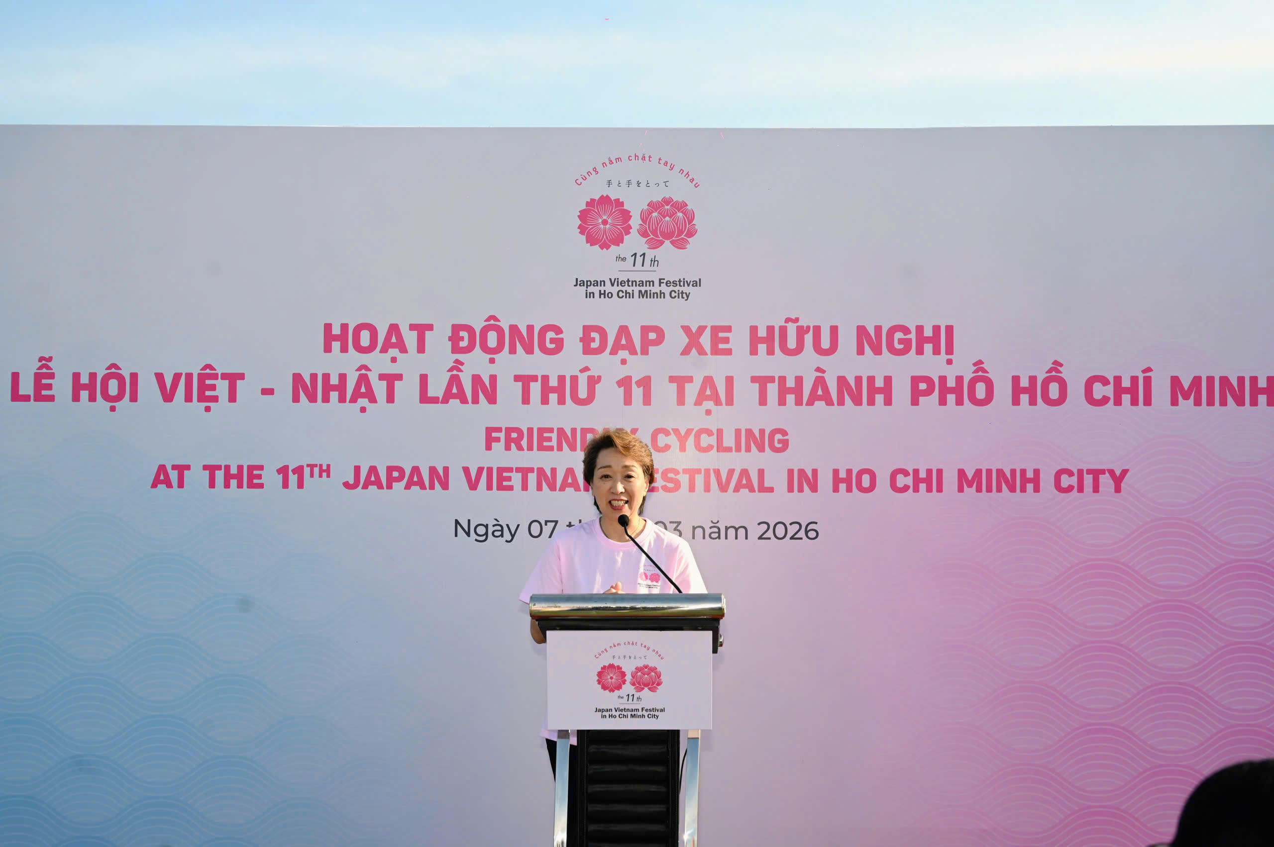 | Chương trình đạp xe hữu nghị cũng là hoạt động khởi động cho Lễ hội Việt Nam - Nhật Bản lần thứ 11 diễn ra tại Công viên 23/9, phường Bến Thành (TP.HCM). Lễ hội năm nay có chủ đề “Cùng nắm chặt tay nhau - Trẻ em - Trái đất - Tương lai”, dự kiến quy tụ khoảng 160 đơn vị với 300 gian hàng và 45 đơn vị biểu diễn nghệ thuật. Thông qua các hoạt động giao lưu văn hóa, thể thao và kinh tế trong khuôn khổ lễ hội, hai nước kỳ vọng tiếp tục tăng cường sự hiểu biết, hợp tác và gắn kết giữa nhân dân hai quốc gia trong thời gian tới. |